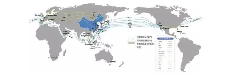 目前在全球63條海纜上擁有資源,其中參建海纜11條,深度覆蓋亞太、通達歐美、一帶一路國家地區。
